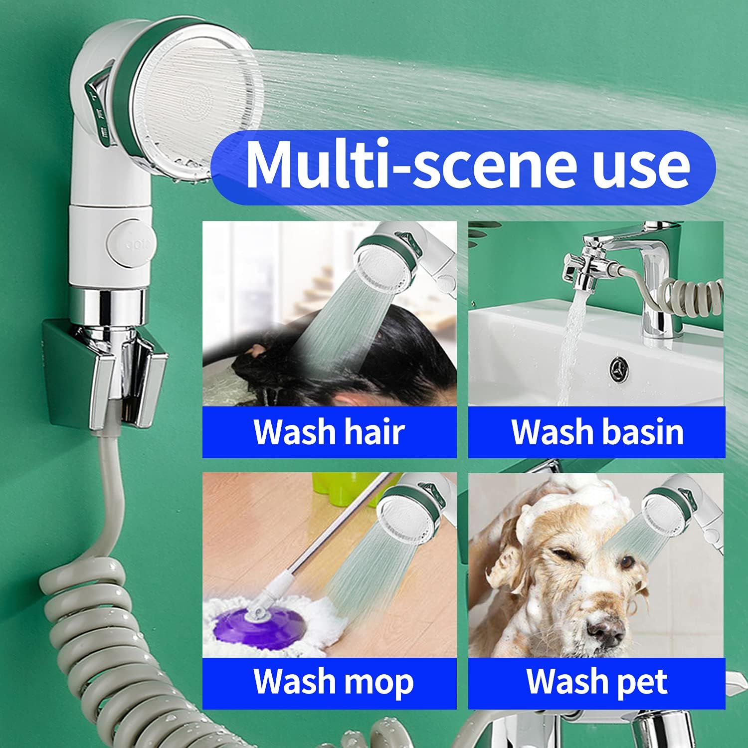 Le pommeau de douche dispose de 3 modes : pluie, massage et pulvérisation. Chaque mode offre une expérience de douche spéciale. En outre, il dispose également d'une fonction d'arrêt. Il est adapté pour les adultes, les handicapés, les personnes âgées, les blessés, les bébés et les animaux domestiques. Nettoyez toutes les parties du corps, du sol, des animaux domestiques, de la baignoire et des plantes aquatiques.