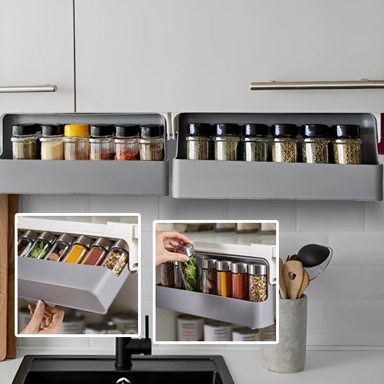 Libérez votre espace de travail en un clin d'œil avec notre rangement à épices coulissant