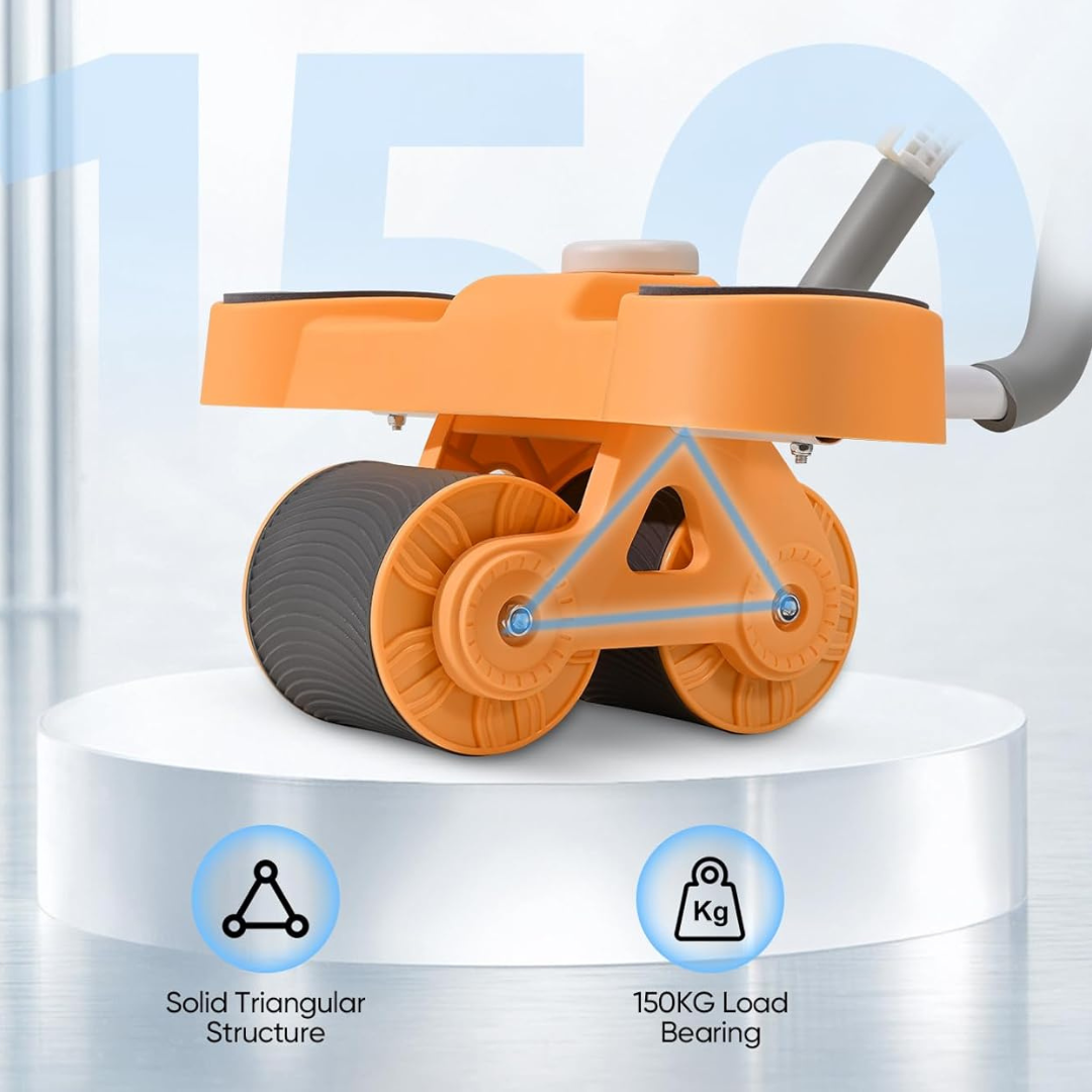 ROUES DOUBLES STABLES AVEC PLAQUE DE ROULEMENT : Conçue avec deux roues élargies de 10 cm pour la structure triangulaire la plus stable, notre roue abdominale rebondissante pour le soutien du coude glisse de manière plus stable au lieu d'osciller d'un côté à l'autre par rapport à une roue unique. La plaque d'appui offre un équilibre et une stabilité supplémentaires avec une capacité de charge de 150kg/330lb.
