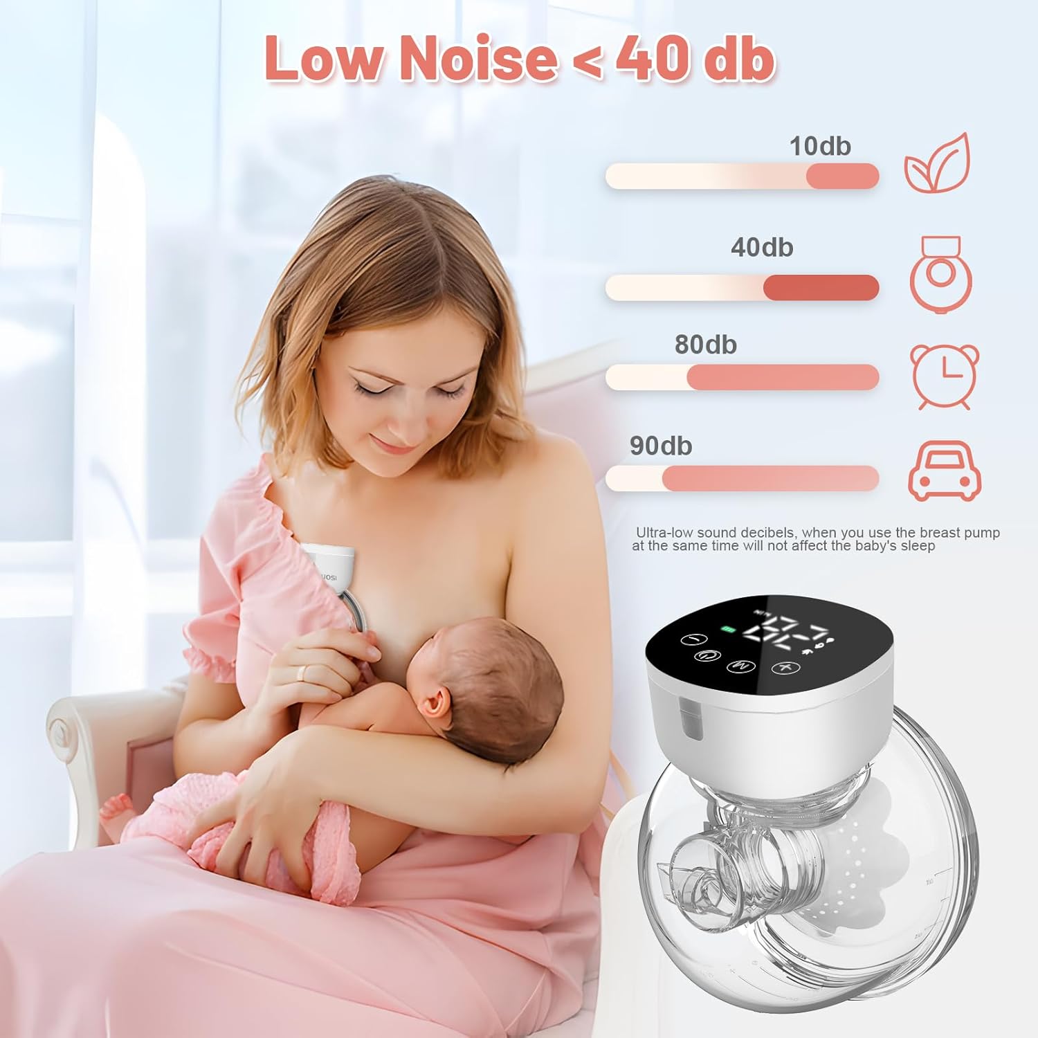 Tire-lait sans main super silencieux et affichage LED : le son de ce tire-lait mains libres sans fil est inférieur à 40 dB. Même la nuit, le bébé ne sera pas dérangé lorsqu'il succion et dort bien, les nouvelles mamans peuvent également profiter d'une haute fréquence mais d'un pompage silencieux.