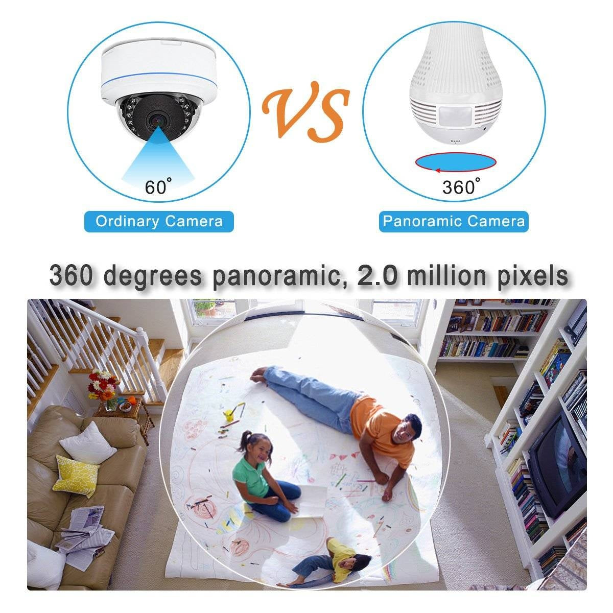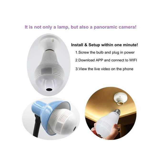 HD sans fil Fisheye 3D et VR Caméra IP sous forme d'ampoule de lampe pour la surveillance d'affaires et la surveillance à la maison.
