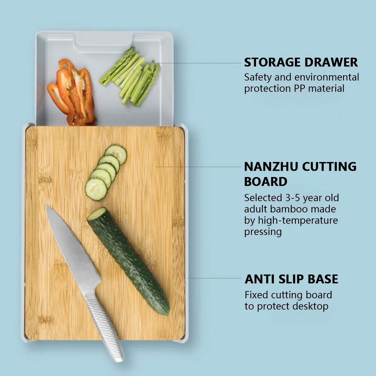 [Tiroir amovible et pieds antidérapants]Notre planche à découper est conçue avec un tiroir amovible, de sorte que les ingrédients hachés puissent être placés directement dans le tiroir et versés dans la casserole lors de la cuisson.Il y a 4 pieds antidérapants sur le fond, qui sont robustes et résistants à l'usure tout en protégeant le comptoir des rayures.