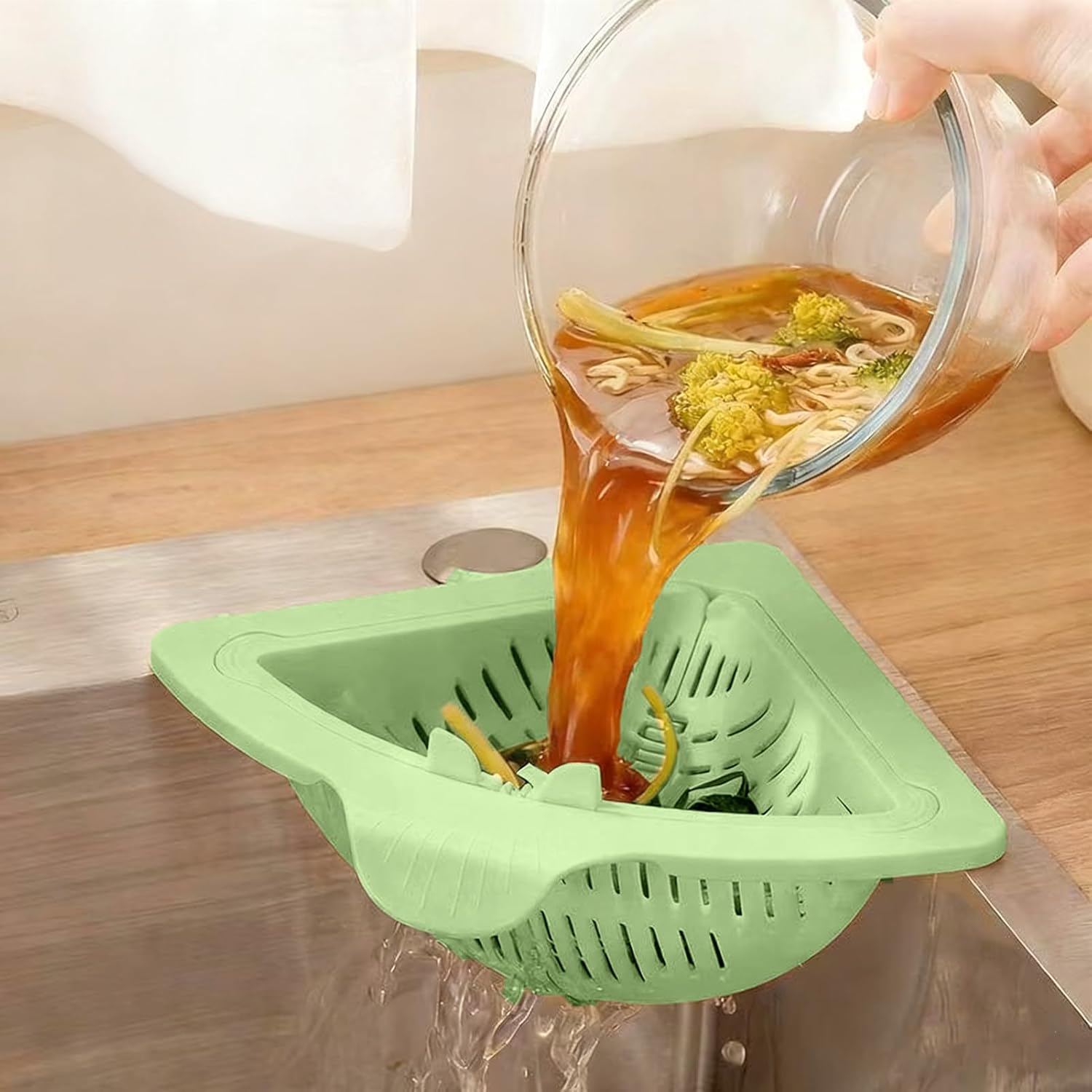 Filtre d’Évier d’Angle 2 en 1 – Zéro Bouchon, Cuisine Toujours Propre !