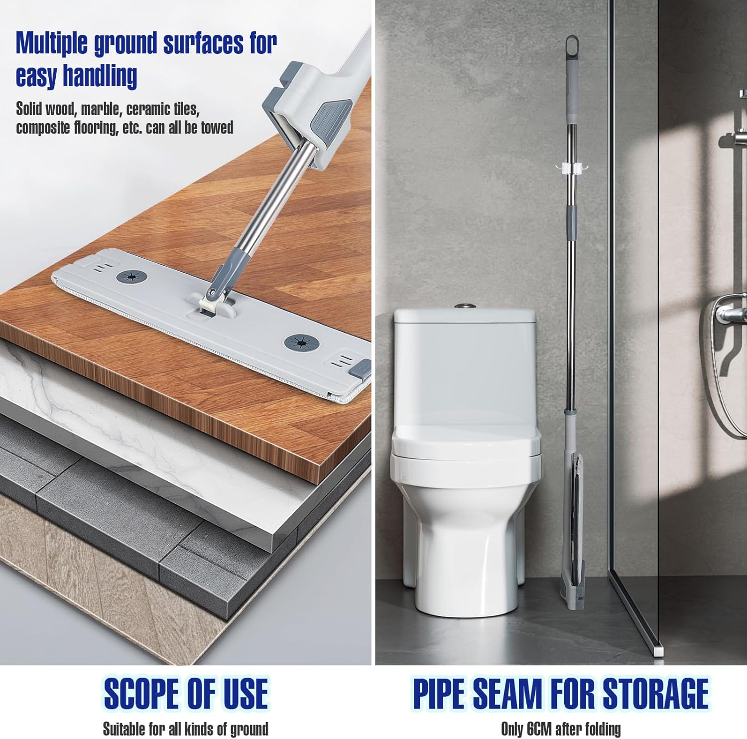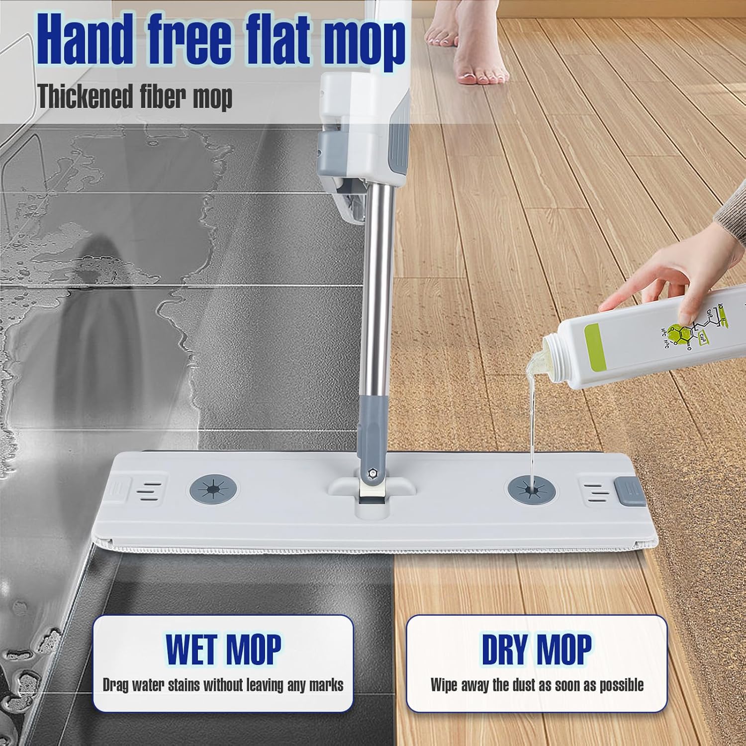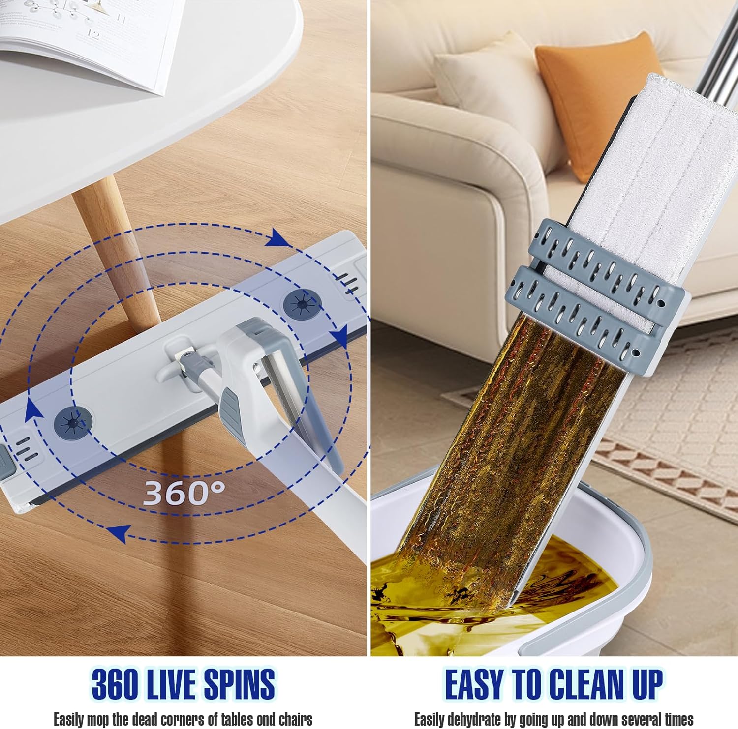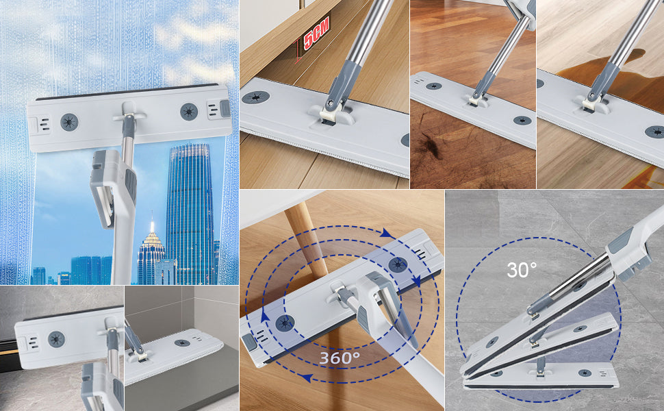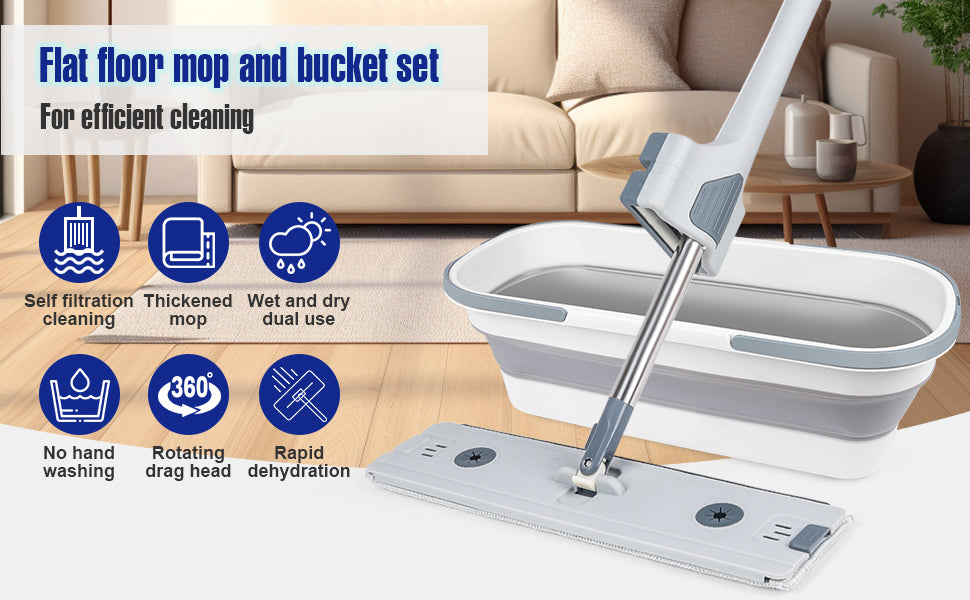 Serpillière plat auto-essoreur avec seau pliable